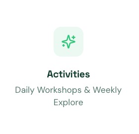 This isn't a regular retreat. It's a new style of learning while enjoying–driven by internal motivation. No boring daily classes, just optional workshops & programs you choose.